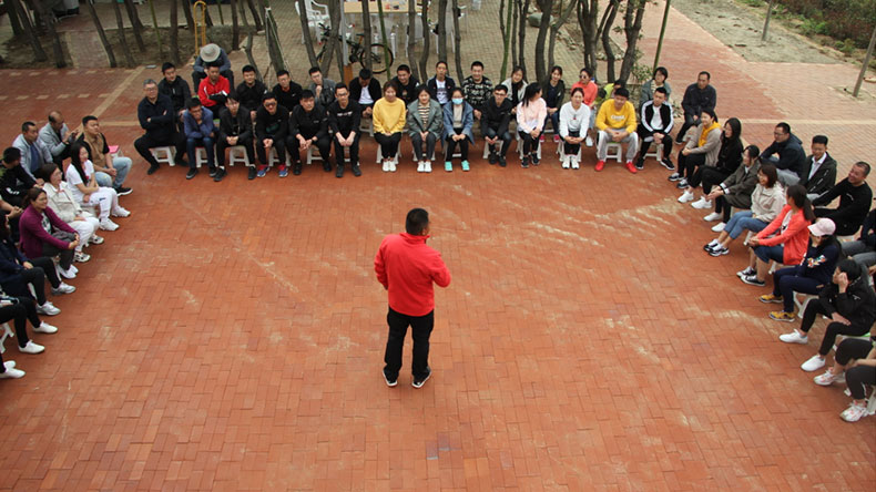 一進入訓練基地,教練將特斯特的所有人員分成了四個小組,通過簡單的破冰互動,大家開始進行團隊組建。教練要求每個小組選出隊長、副隊長、隊秘和宣傳委員組成領導班子,起好隊名并想好隊歌及團隊亮相的姿勢,其中有兩個組的隊長是公司新入職的員工,他們勇于擔當的精神贏得了大家的陣陣掌聲。隨著四組隊伍展示完畢,大家也正式進入了當天的訓練狀態。