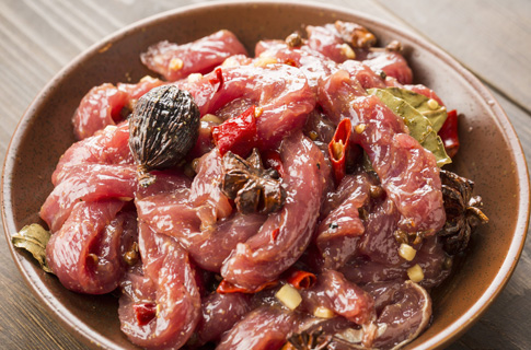 瘦肉、肥膘、水、特斯特復(fù)配水分保持劑、食鹽充分?jǐn)嚢柚琳承?