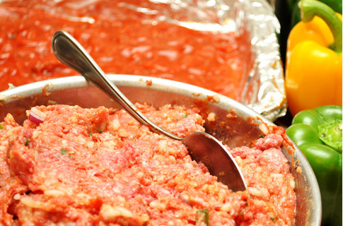 制備好的特斯特湯汁膠CJ02凝膠用絞肉機絞成3-5mm細(xì)顆粒,加入料餡中攪拌均勻,料餡準(zhǔn)備完畢